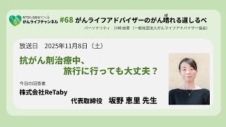 2025/11/8(土)放送分 【ゲスト】株式会社ReTaby 代表取締役 坂野恵里 先生 【パーソナリティ】一般社団法人がんライフアドバイザー協会 川崎由華 ▼今回の質問は【抗がん剤治療中、旅行に行っても大丈夫?】 […]
